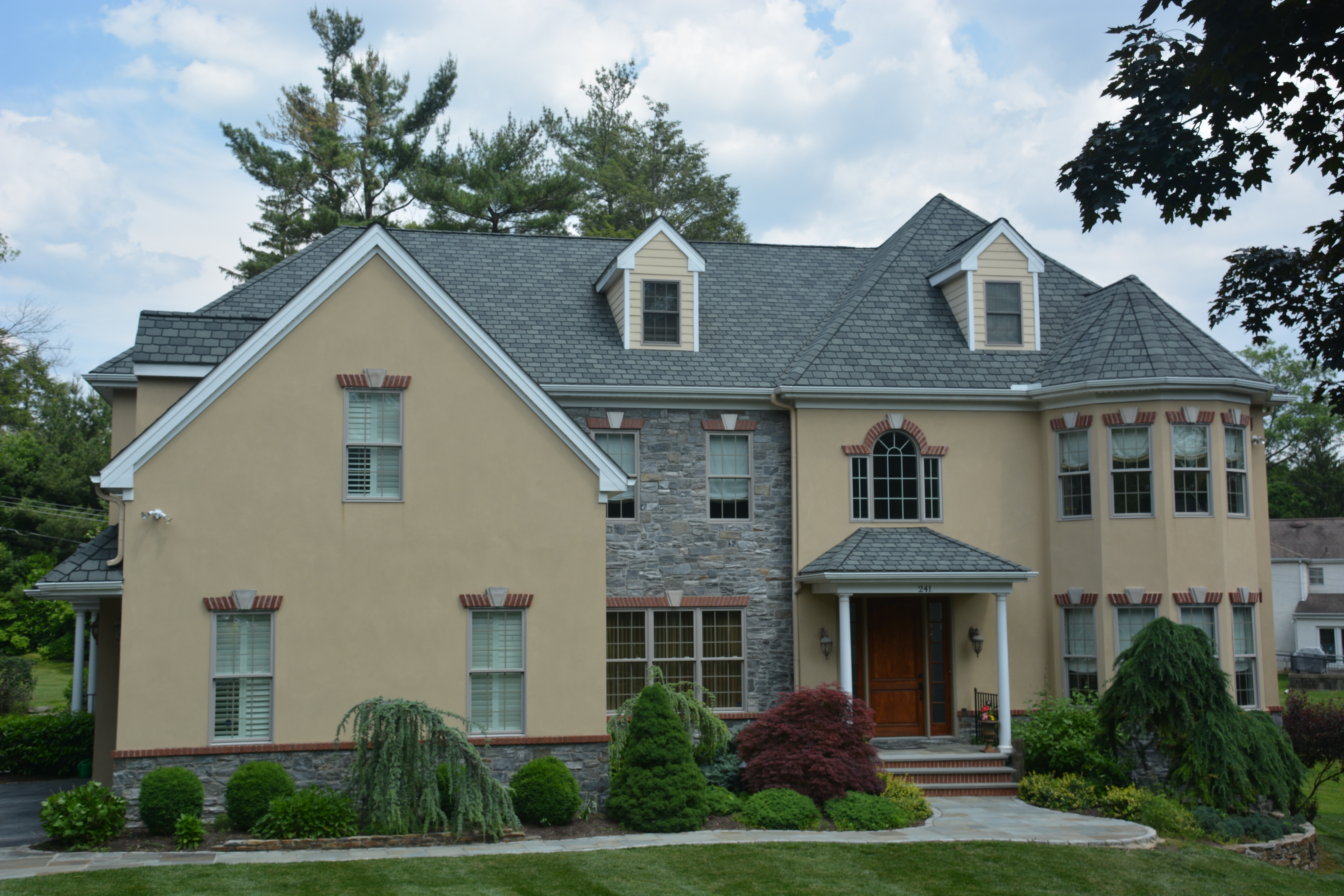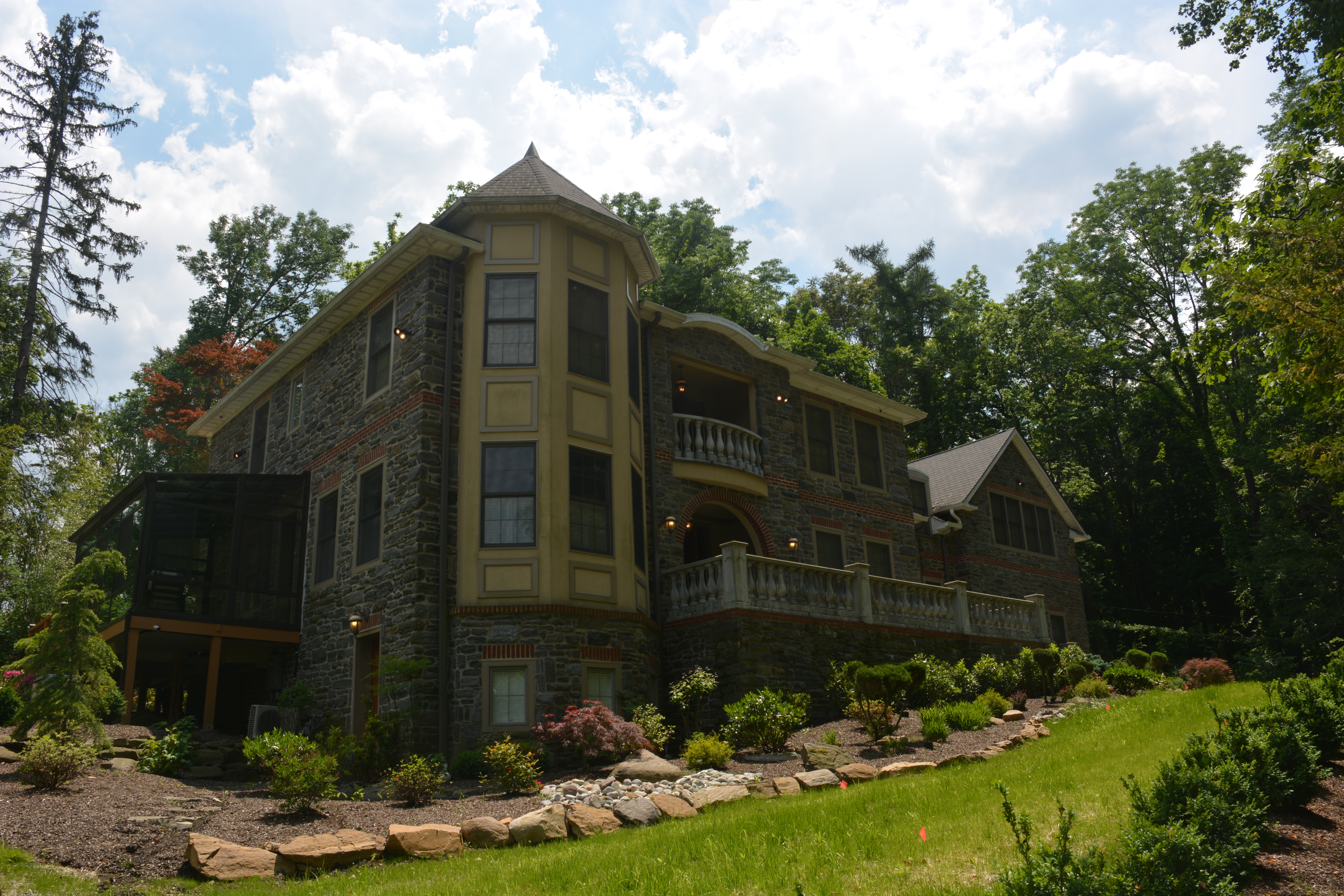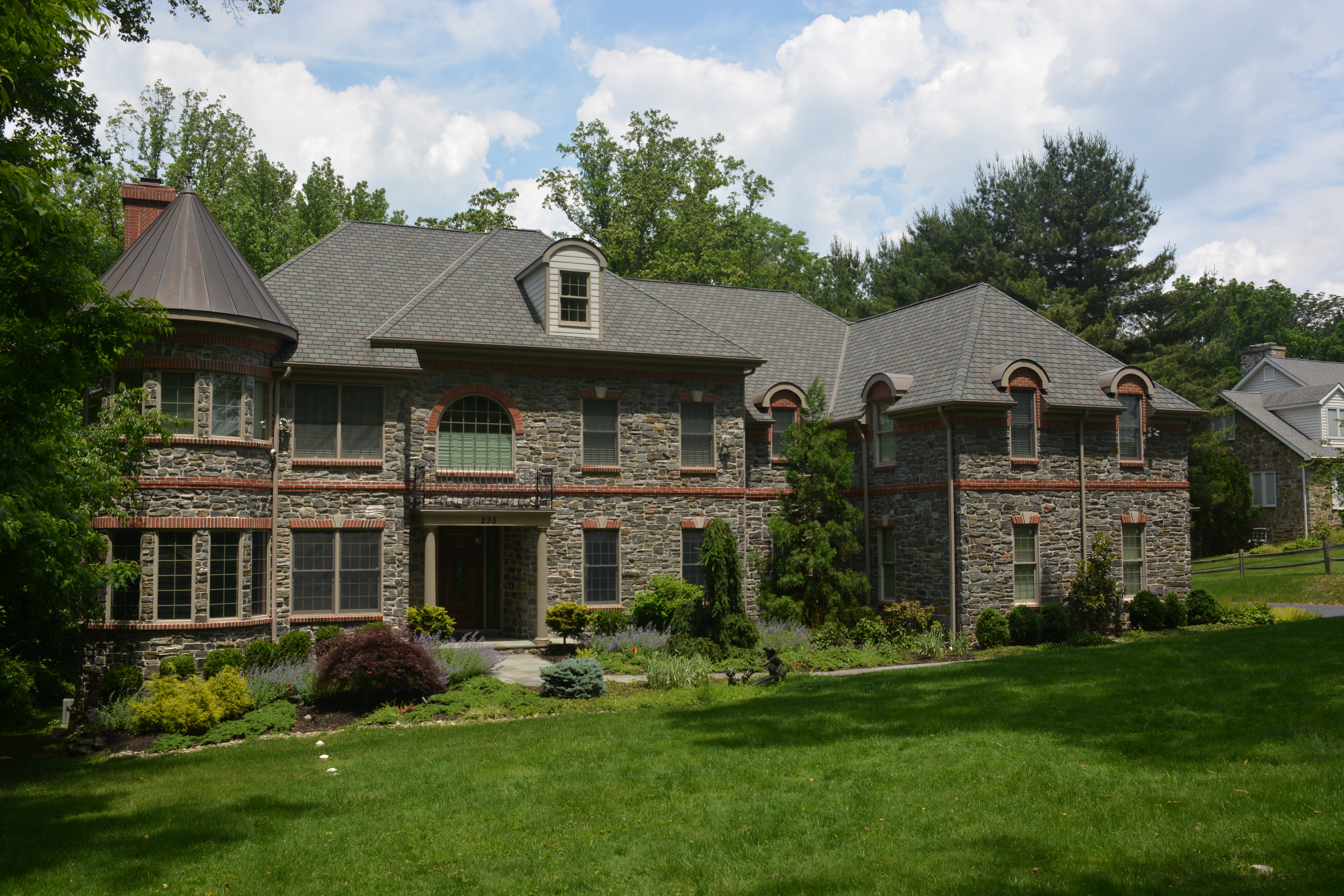 Main Line mansion fit for royalty. Mica Schist exterior with intricate brick work, state of the art custom kitchen. Offered at $2,400,000